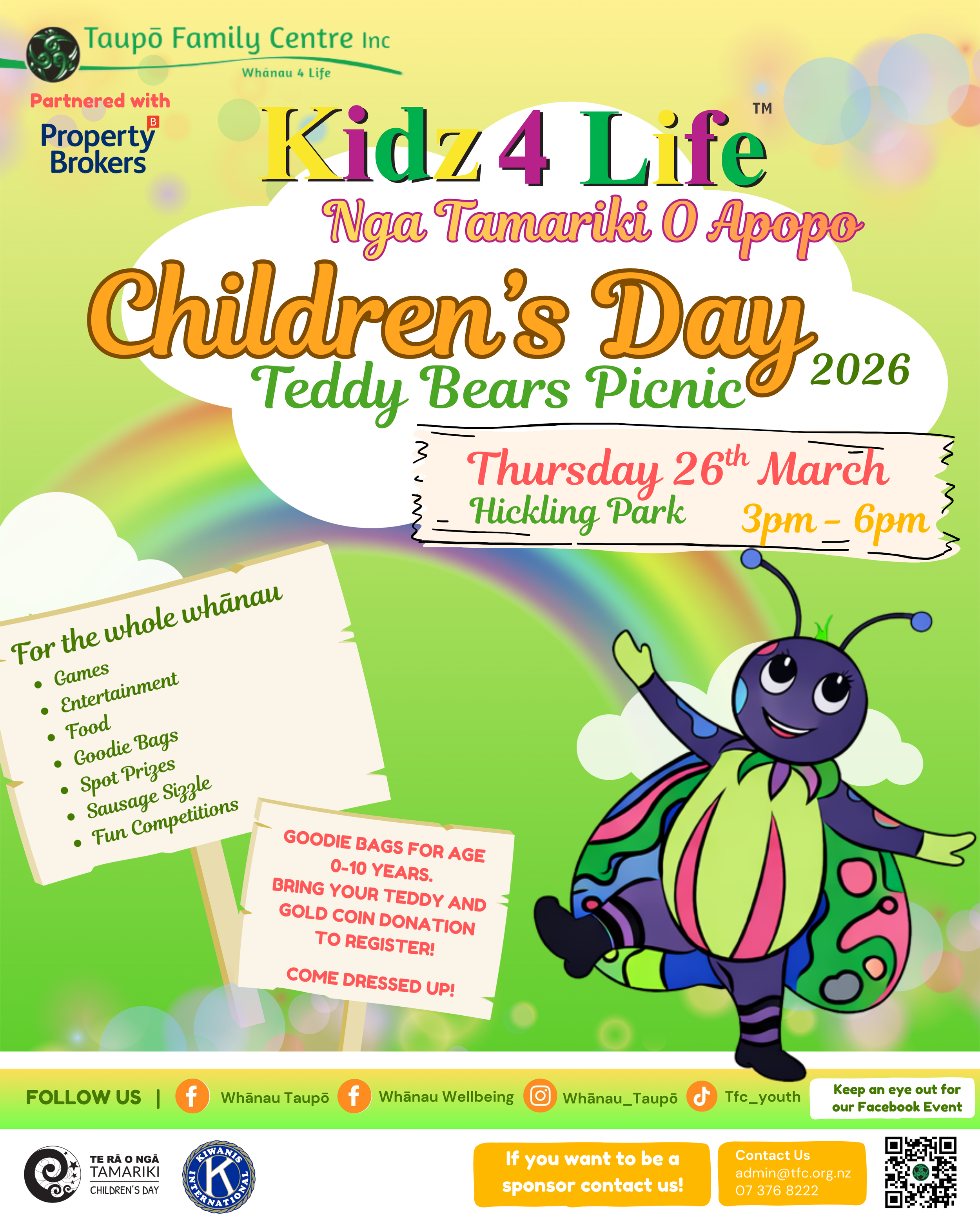 This year, we are pleased to be partnering with Property Brokers Taupō, and our event theme is Kidz 4 Life.